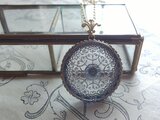 ヴィンテージ 淡Blue/Flower-Pattern(32㎜) クラシカルネックレス