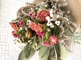 2種類のドライフラワーのカーネーションと白いアンティークな実
