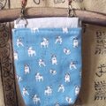 蝶ネクタイのフレブルプリントのバネ口ポーチです。
