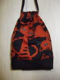 黒地にオレンジの猫柄のコットン生地で作ったミニ巾着です。