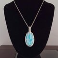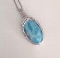 ドミニカ産ラリマーをsilver950ワイヤーとシルバーフィルドワイヤーでラッピングしてペンダントトップに仕立てました。