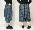 幾何学模様が綺麗な色大島の着物古布でシンプルな可愛いサルエルパンツを作りました。