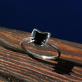 猫の顔の形にカットされた、ブラック スピネルを使用したリング。