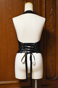 前から見るとマニッシュなカマーベスト、後ろから見ると女性らしいレースアップと、