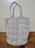 ベージュのレース糸で編んだ方眼編みのトートバッグです。
