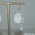 上から宝石質レインボームーンストーン、淡い淡い宝石質モルガナイト、淡い淡い宝石質アクアマリン、一番したには宝石質レインボームーンストーンのペアシェイプを下げています。