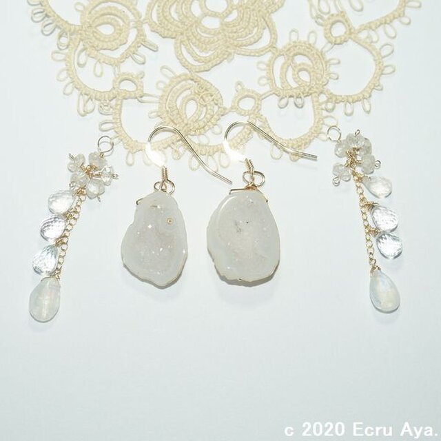 素材:グレークリームホワイトアイススパークルドゥルージーアゲート スライス、宝石質天然ジルコンAAA ボタンカット、宝石質レインボームーンストーンAAA ドロップブリオレットカット、宝石質モルガナイトAAA ドロップブリオレットカット、宝石質アクアマリンAAA ドロップブリオレットカット、宝石質レインボームーンストーンAAA ペアシェイプブリオレットカット、その他すべて14kgf