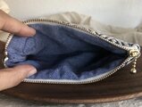 青森県津軽地方で生み出された伝統技法こぎん刺しのポーチです。