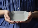 セピアブルー釉 八角プレート(小)