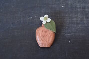 牛革で作った壺のブローチに豚革とワイヤーで作ったドクダミを挿しました。