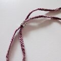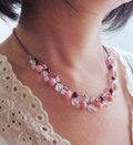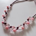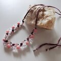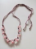 落ちついたピンク系の石をつかった、調節できる紐のネックレス。