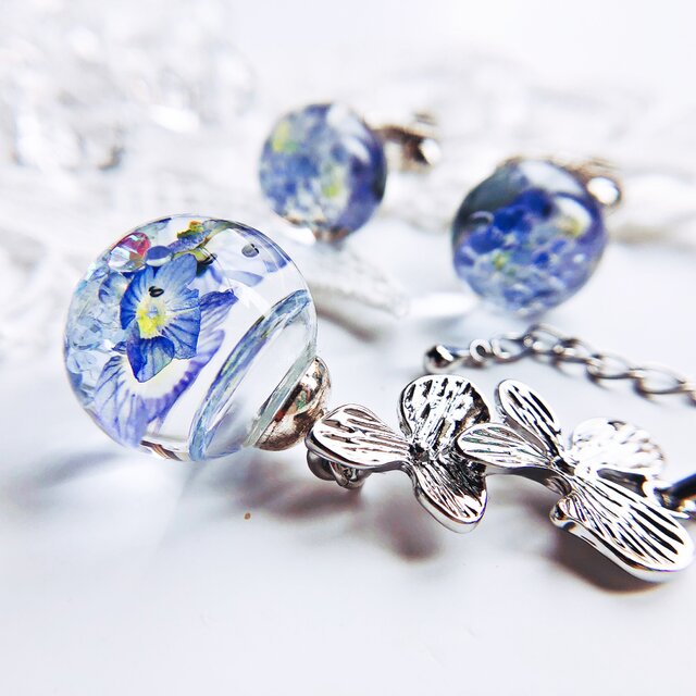 ガラスドーム ネックレス&イヤリング 2点セットです