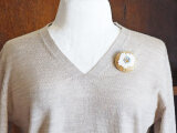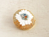 素材:シルクオーガンジー、スパンコール、ガラスビーズ、ガラスストーン(ヴィンテージ含)、刺繍糸。土台は金属製のセッティングを使用。回転式ブローチ金具となっております。