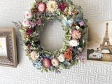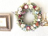 マルチカラーの明るい雰囲気のリースです。