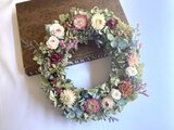 ドライフラワーのローズやカーネーションも添えて。