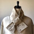 銘仙×リネン刺繍の小さな襟巻き2008 ストール ネックウォーマー プチマフラー リバーシブル 着物リメイク