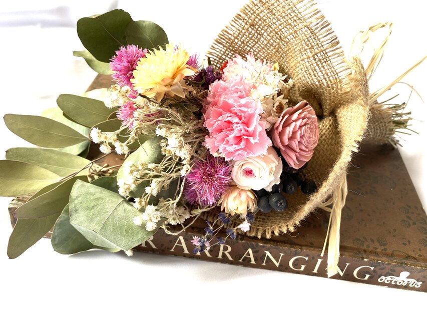 ナチュラルなイーメージにジュート生地を周りにまいて