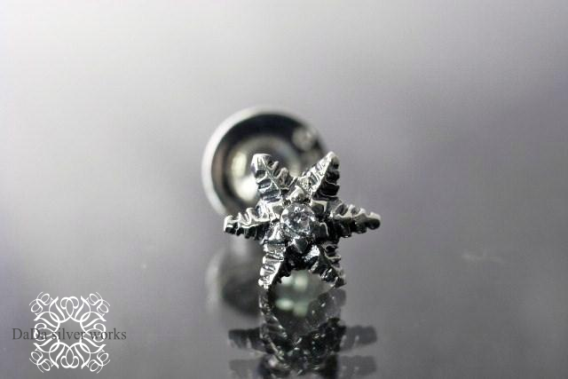 雪の結晶の中央に煌くキュービックジルコニアが美しく耳元をクールに飾ります。
