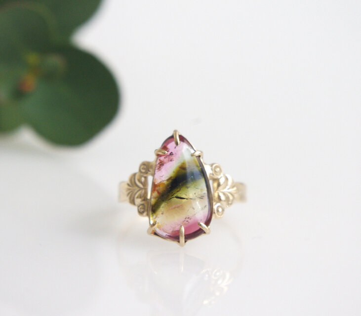 ウォーターメロントルマリンのK10製、1点ものリングです。