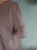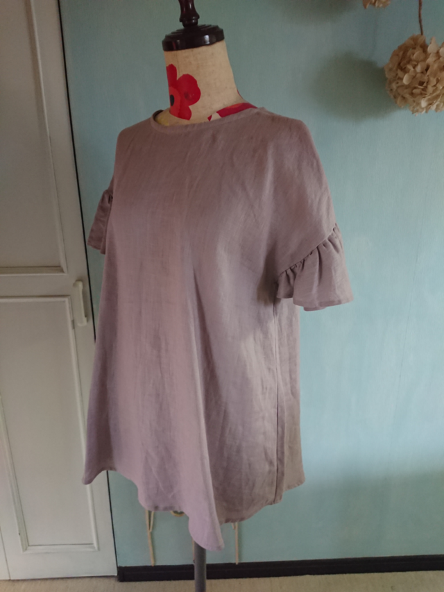オーブピンクのリネン生地で、お袖にフリルをつけて、可愛いブラウス作ってみました!肩落ちデザインで、Aラインなので、ゆったり着やすいですよ!