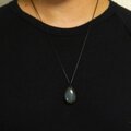 光の無い状況では、オニキスなどと間違えてしまいそうですが、明るい光の下でのこの石は、一つ一つ浮かび上がる色の見え方が、とても神秘的で、見ていると不思議な優しさと、美しさに心が引き込まれていくような石です。