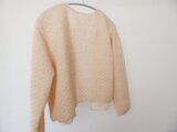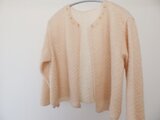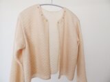 家庭用編み機で二重に編んだ襟なし、ボタン無しのニットジャケットです。