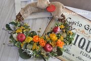 りんご(フェイク)を入れてかご風のハーフリースにアレンジしました。