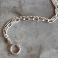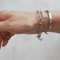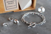 オーバルと細身のチェーンとのコンビネーション。タフで重厚な仕上がりです。総重量は12g。長さ21センチ。写真のモデル手首サイズ14.5センチには少し大きめのサイズ感です。