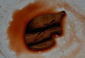 ・その材を、「柿渋─かきしぶ」という、柿の実から作られた染料で赤く染めて・・・