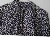 前身頃のスタンドカラーの切り替えにあけたスリット部分にボウタイを通してそのまま折り返したり結んだりすれば、これ一着で着こなしが華やぎます。