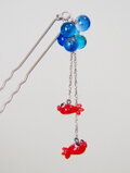 金魚が泡をぷくぷく吐き出しているイメージのかんざしです