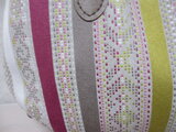 光沢のあるストライプが品よく映え、刺繍したような柄も大人かわいく爽やかな生地(CLARKE&CLARKE社)で高級感があります。