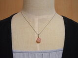 さくら色の地にピンク・赤・緑色ののガラスで水風船のような模様を描いたガラス球をネックレスにしてみました