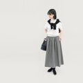 ●冬素材SALE・15%OFF● 洗えるウール 上質ヘリンボーン 黒 オフ白 ロングスカート ●LYRA-SK●いつも素敵な作品をありがとうございます またよろしくお願いします