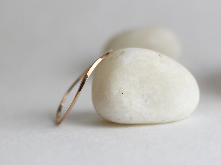 ひとつひとつ手でPinkGold K18 0.8mm線を鍛造しアクセントをつけた細身のリング。送料無料。