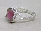 花の季節を思わせるようなウォーターメロン原石フリーフォームを銀のレースで飾りました*レースそのものを銀に置換鋳造したものでレース素材によるテクスチャーも綺麗です*スポット状にクラックが見られますが総じて透明度の高い唯一無二の原石フリーフォームによる1点モノをお楽しみ下さい*リングはアンティーク調マット仕上げ、10~18号(推奨サイズ)の範囲を目安に調整可能、サイズ確定後に銀のレースと粒々で包むように石留め致します*通常、黒化遅延処理を施しますが銀そのものの変化をお好みの場合は処理不要とお申し付けください*黒化防止ロジウムコーティング、K18コーティング、K18ピンクゴールドコーティングは承ります(別途1000円)お申し付けください*