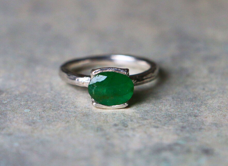 現代の手作りの指輪細工。バンド部分はハンマード技法です。
