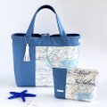 ・表と裏のアイボリー地にグレーと水色の古地図柄は、パリ・モンマルトルで購入したキャンバス地。