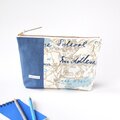 昨年パリ・モンマルトルで購入した古地図柄の生地で、マチ付きポーチを作りました。
