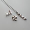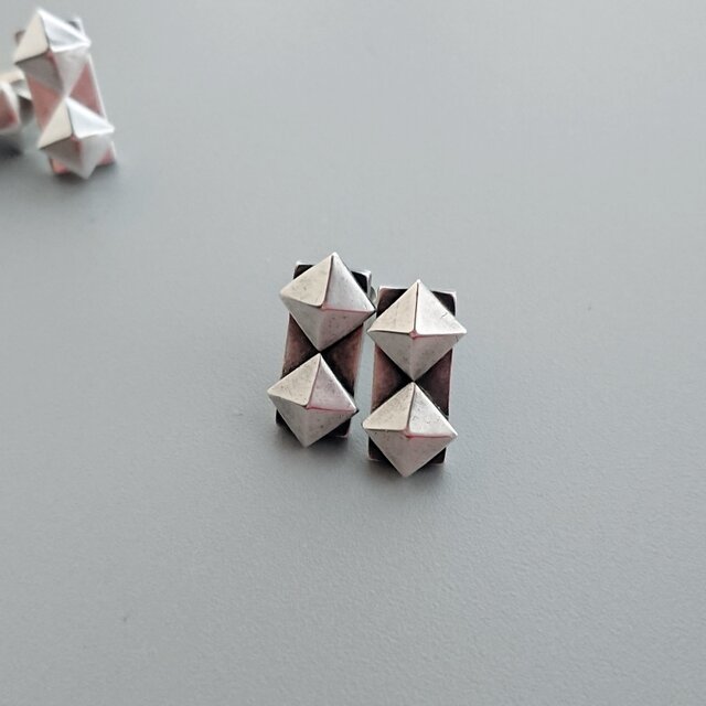光沢のあるシルバーのスタッズを縦に二つ並べてピアスにしました。