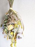 母の日に!自家栽培ハーブのミモザとタタリカとスターチスのドライフラワー・スワッグ