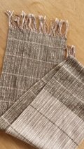 縦糸は柔らかなコーマ綿とガラ紡。横糸には柿渋で染めた渋い色のカシミヤとベージュのカシミヤを使いました。