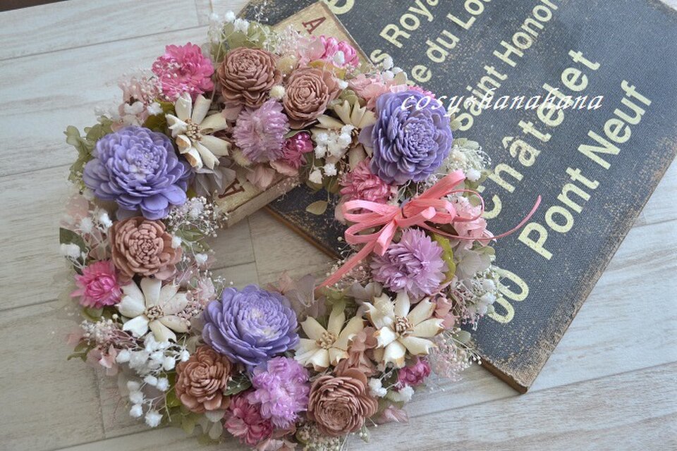 2種のかすみ草がファンタジックな印象の綺麗目リース。