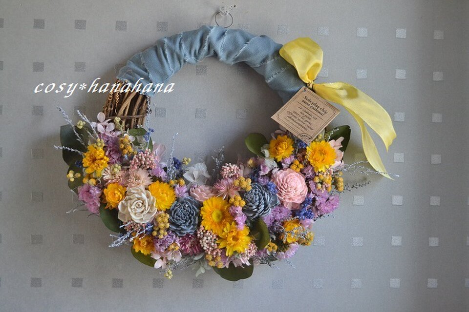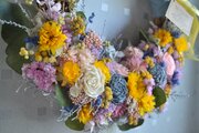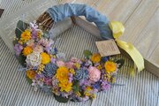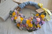 たくさんのお花をバスケットにアレンジしたようなリース。