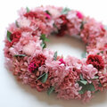 愛らしいピンクアジサイをたっぷり使ったプリザーブドフラワーのリースです。