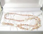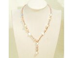 照りが綺麗な高品質の本真珠(淡水)と、真珠光沢が綺麗な貝パーツ(白蝶)、ラブラドライトを使ったYネックレスです。