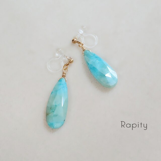 天然石プレナイトを着色、コーティング処理をした珍しいストーンを使用したノンホールピアスです。