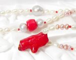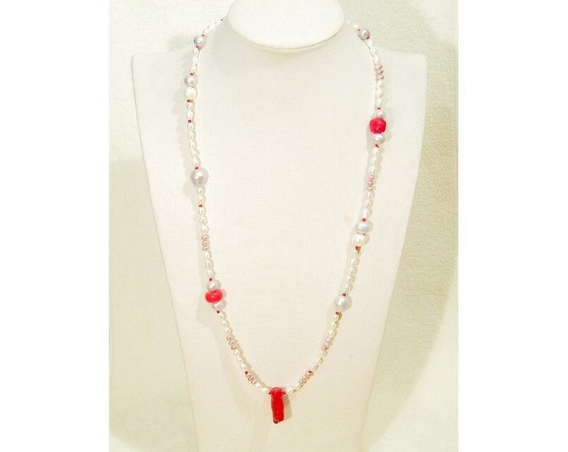 本真珠(淡水)と山珊瑚を使ったネックレスです。