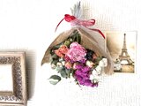 ピンクの花びらが美しいシャクヤクとカーネーションのドライフラワー、
