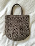 モカ色の麻糸で編んだ方眼編みのトートバッグです。